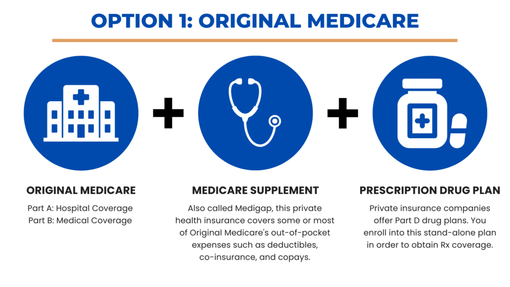 If you choose a Medicare Supplement plan, you’ll pair it with a standalone Part D prescription drug plan to close the gaps in Original Medicare.